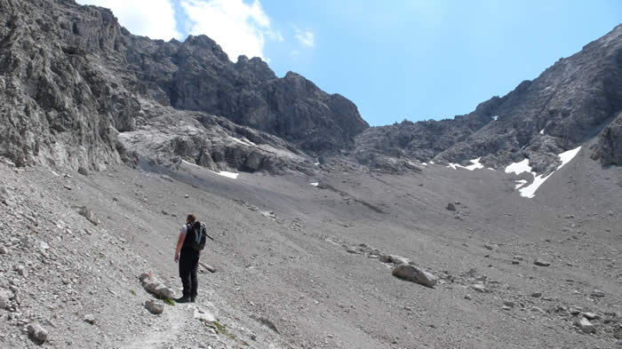 Weiter in das Mädelegabelkar Richtung Märchenwiesen am Fuße der Trettach |