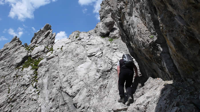 Richtung Bockkarscharte-Abzweig zum Berg der Guten Hoffnung unmarkiert, Trittsicherheit erforderlich |
