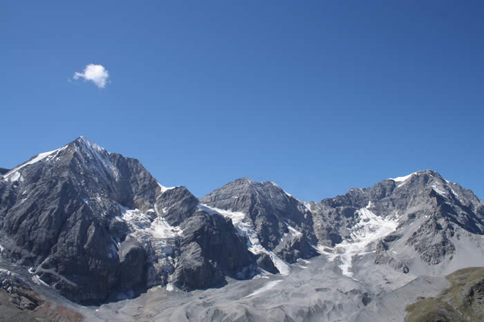 Aufstieg zur Pizzini Hütte: Vom Rifugio Forni 2.176 m führt ein angenehmer, breiter und gut bezeichneter Weg durch das Valle di Cedec nach Norden in 1,5 Std. zur schön gelegenen Pizzini Hütte 2700 m.
