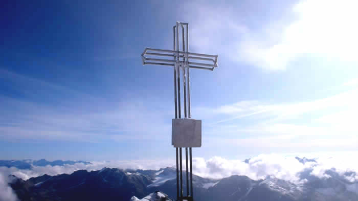 Von der Pizzini Hütte führt der Steig nach Norden Richtung Königsspitze und dessen Gletscher an der Füßen der Südflanke. In der Mitte des eher flachen Gletschers steht ein markanter, roter Fels der links umgangen wird, ehe man dann nach rechts die Steilstufe erreicht die zum Königsjoch führt. Hier kommen wir dann auch zur Route die von der Casati hierher führt. Auf einer Höhe von 2960 Metern den Steig verlassen und leicht aufsteigend den meist gut ersichtlichen Trittspuren nach Nordwesten folgen, wo dann auf gut 3000 m den Gletscher Vedretta del Gran Zebrù erreicht wid. Über diesen in sanfter Steigung immer Richtung Königsspitze weiter bis dann die Steilstufe erreicht wird, die zum Königsjoch führt (Passo della Bottiglia). Hier führt eine etwa 45° steile Rinne hinauf zum Königsjoch auf 3.462 m. Von hier steil (40°) gerade hinauf (oft Steinschlag und sehr heikel bei Ausaperung!) bis zu einer leichten Verflachung unterhalb des breiten und felsdurchzogenen Gipfelaufbaus. Rechtshaltend hinauf bis zum luftigen Firngrat und über diesen nach Westen vorsichtig weiter zum Gipfelkreuz.